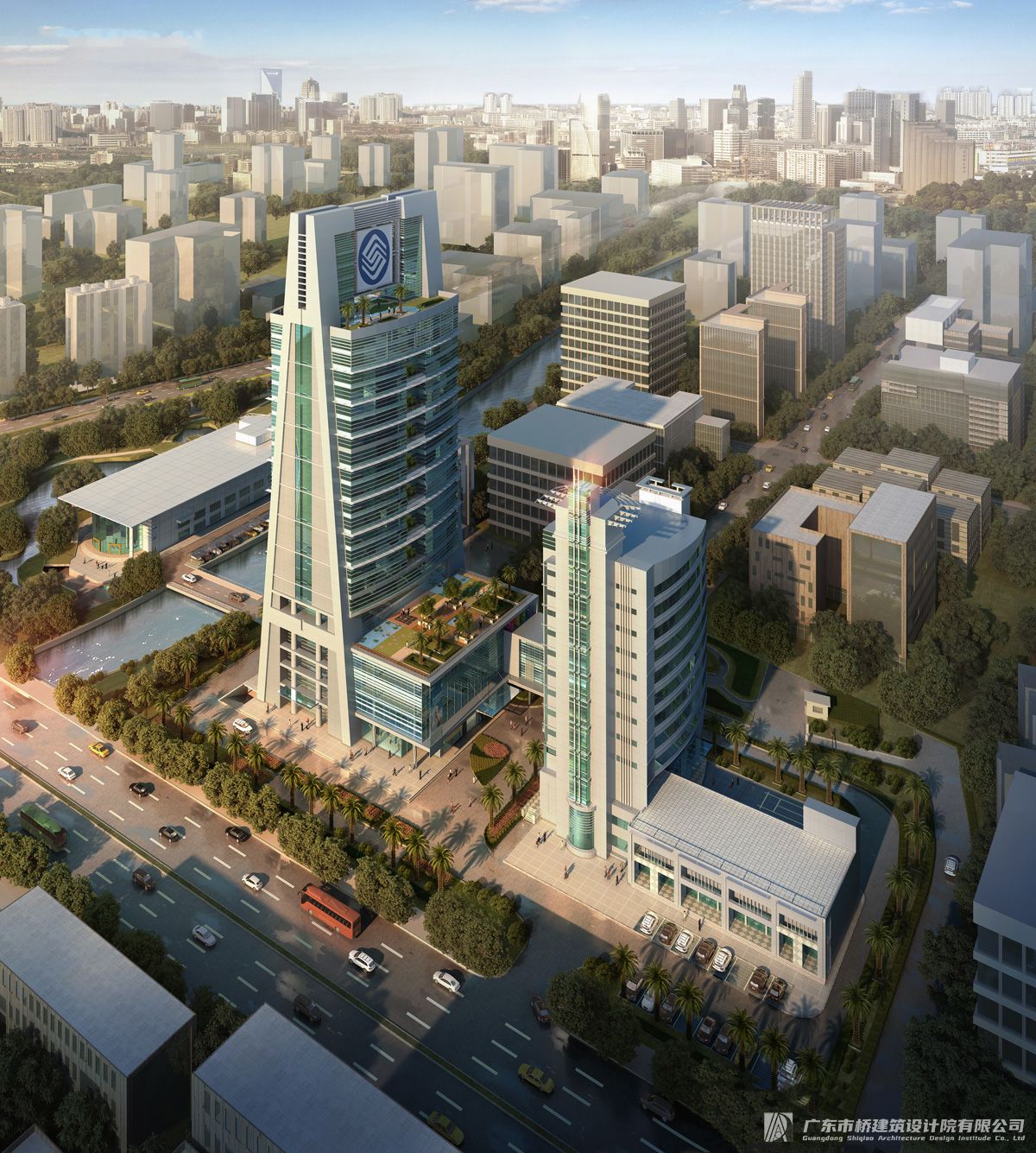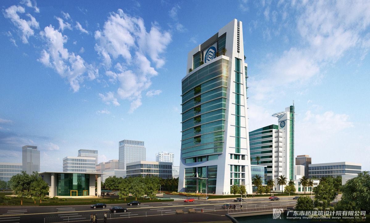 中山移動大廈 總用地面積:17807.4m 總建筑面積:59846.8m 總平面設計時將新建建筑融入原來的環境中,既盡可能尊重原來的建筑,又要滿足現有的規劃設計要求。 結合建筑新技術、理念,將生產調度中心大樓設計成具有移動企業文化的形象的標志性建筑。結合現代化移動調度中心的各種功能要求,將建筑設 計成功能滿足現在,立足未來、技術先進、環境一流的現代化甲級寫字樓